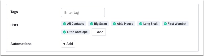 Tags are a fast easy way to add information to a contact. They are a versatile feature and can be used in many different ways. For example, you can use tags to create segments, trigger automations, adjust a lead score, use them in conditional content, and more.